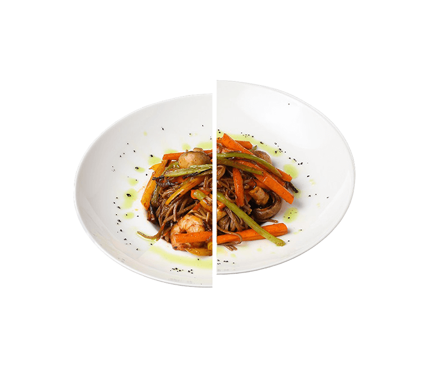 Ծովախեցգետին, լապշա (ուդոն/սոբա), կարմիր սոխ,
