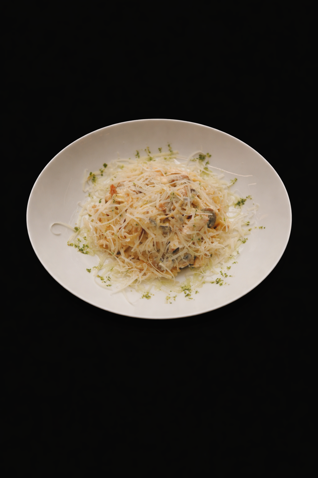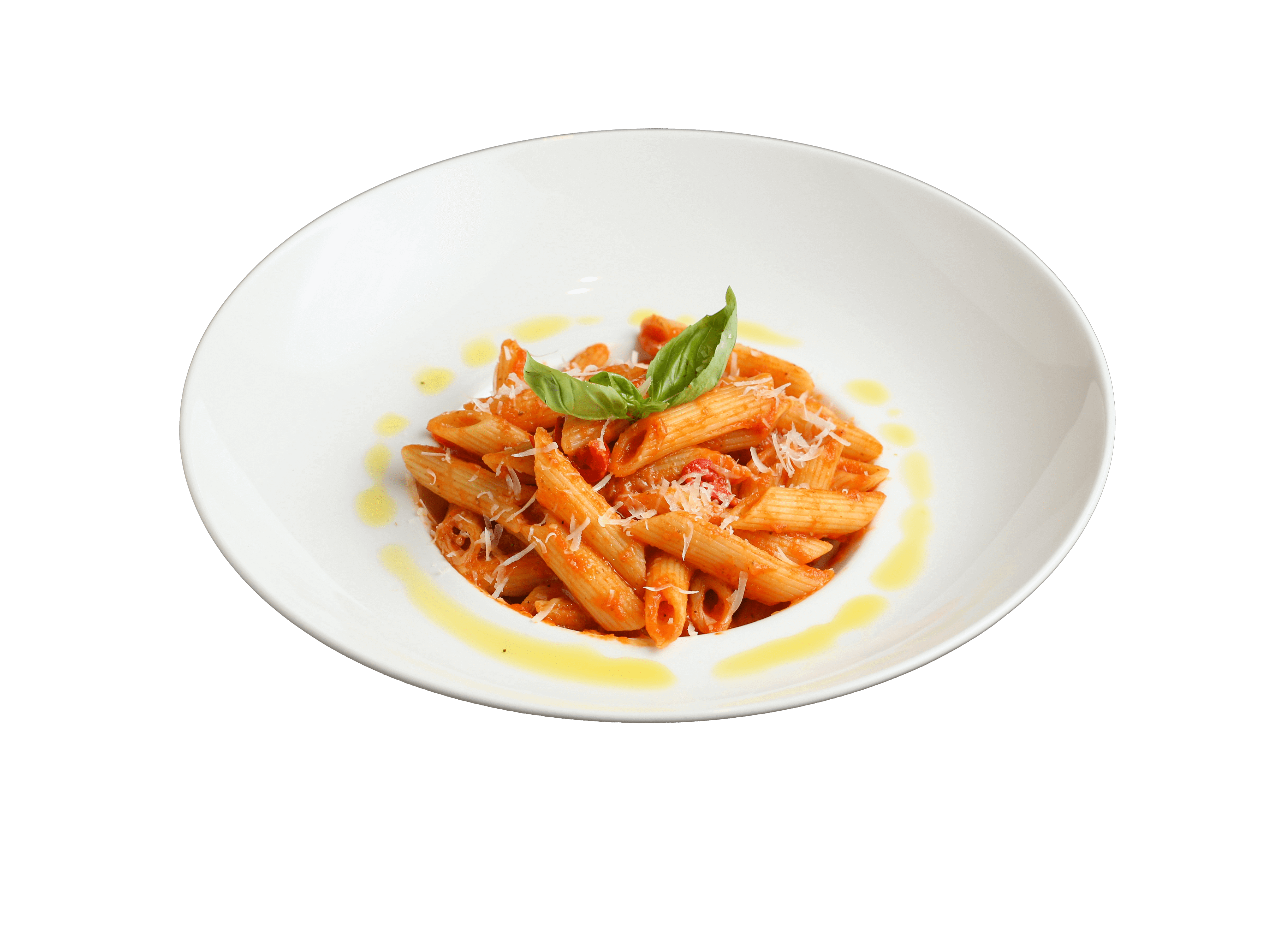 Penne, tomato sauce, chili pepper, basil, parmesan