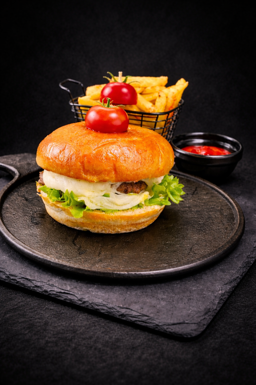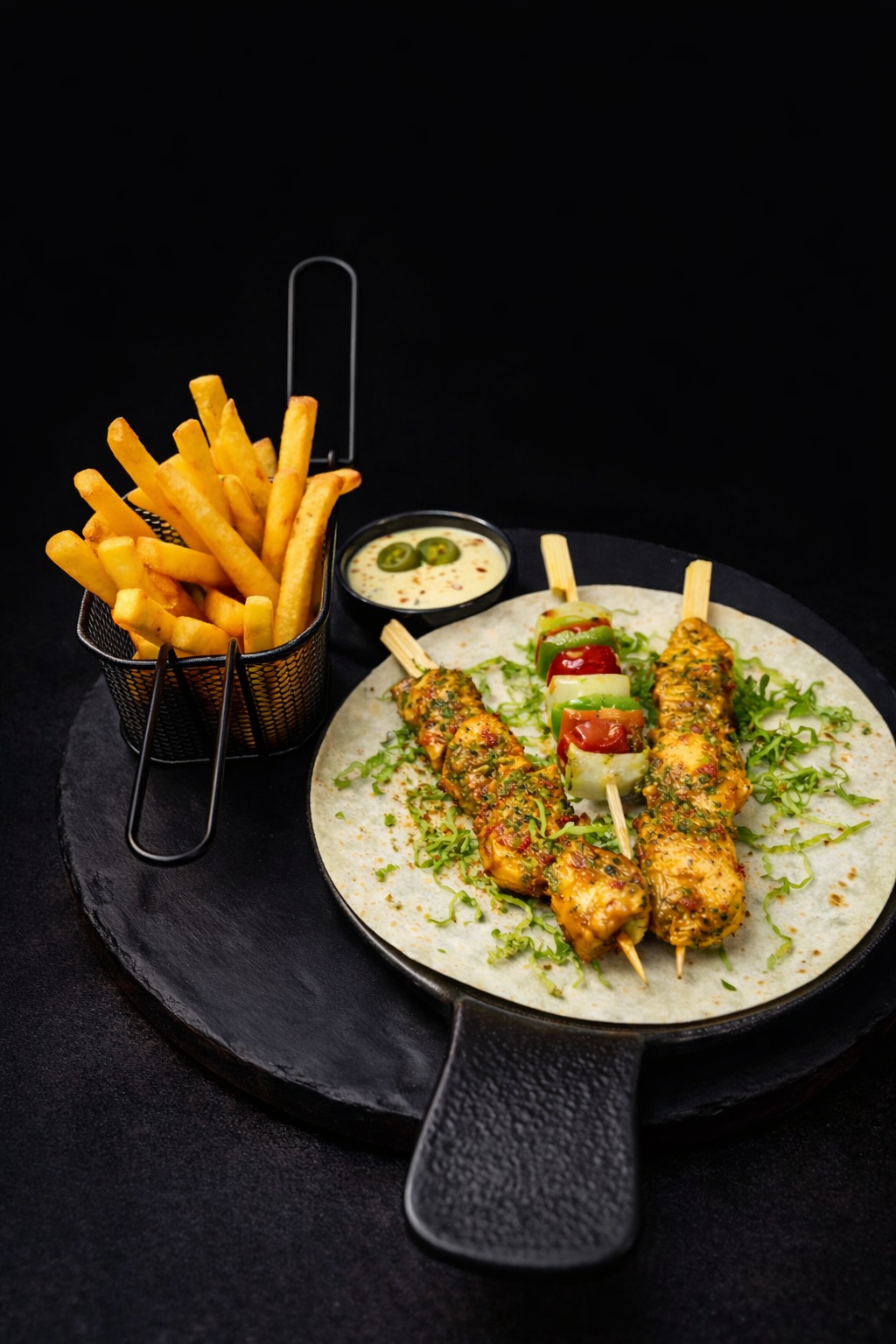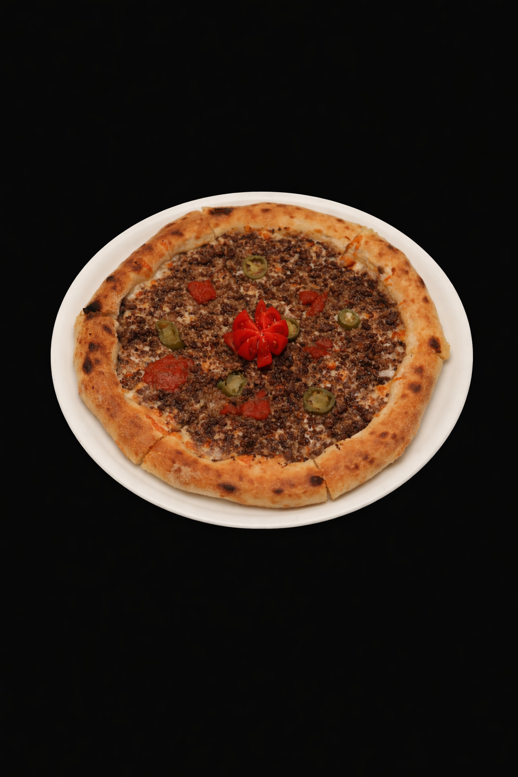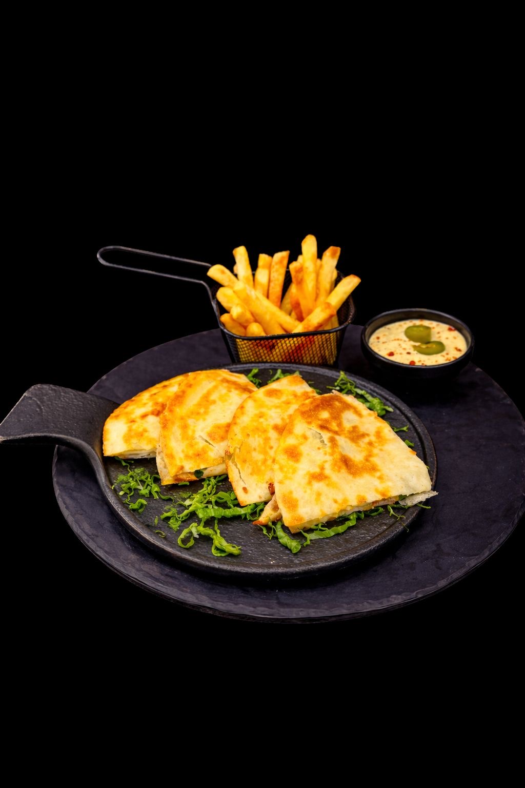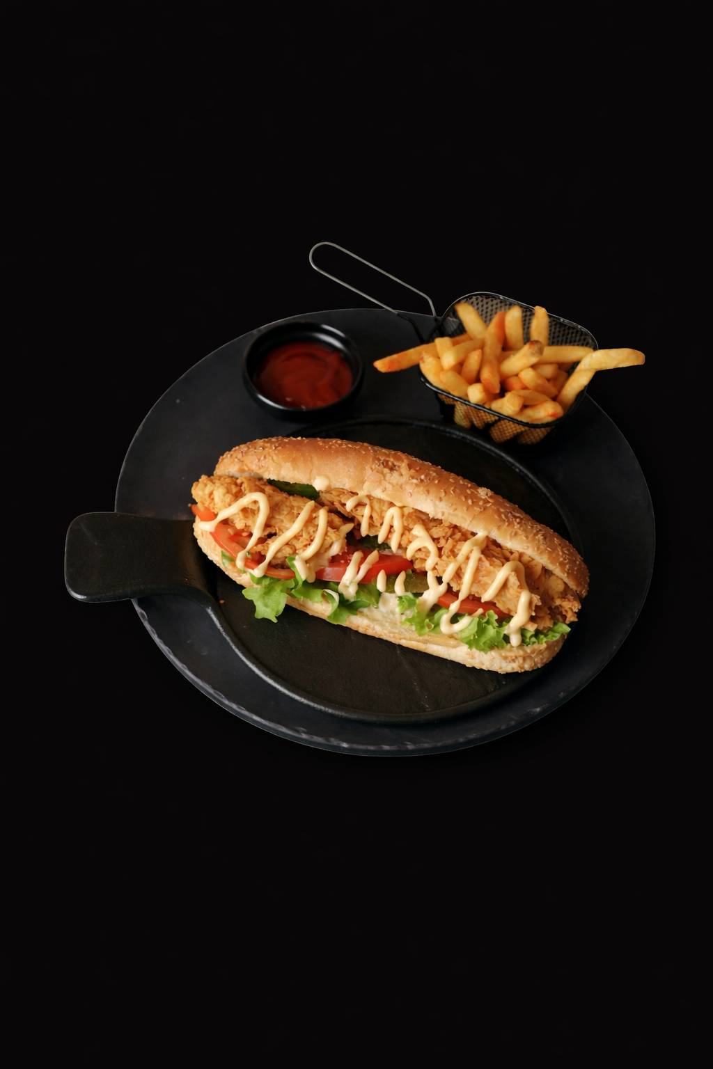 Chicken filet, cheese sauce, mayo sauce, tomato, jalapeño
