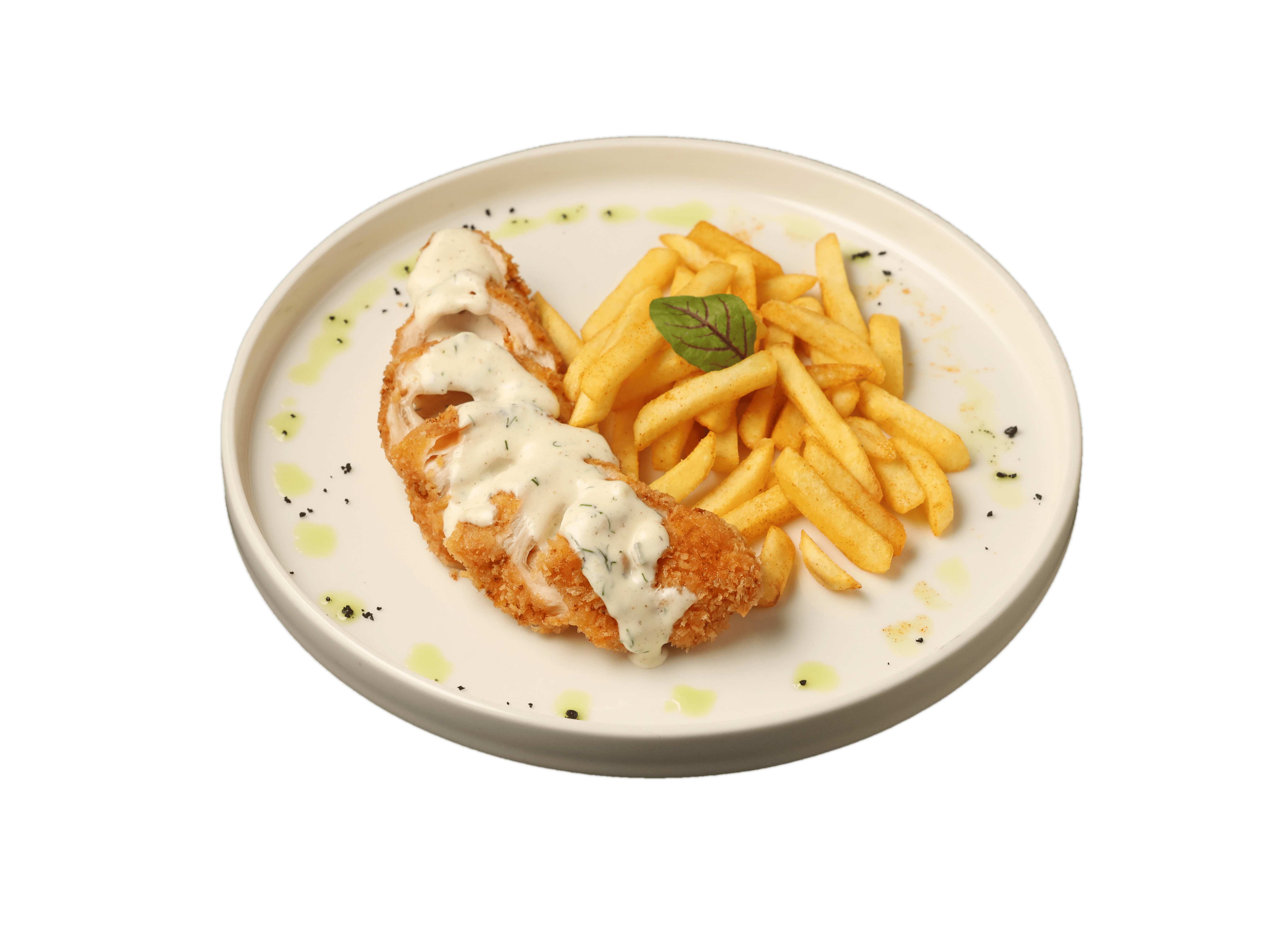 Chicken breast, ham,mozzarella, french fries